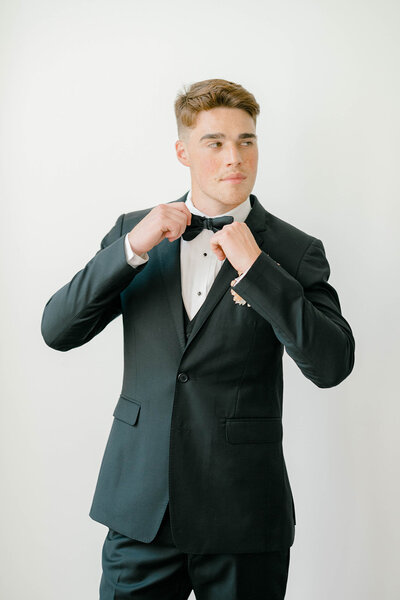 Again I know that grooms aren't always incredibly excited for this portion of the day. Please push them a little out of their comfort zone. Make sure you take them to a place with natural light, minimal or no distractions behind them, and PLEASE make sure all tungsten lights are turned off! Grooms are notorious for leaving items in their pockets. Please make sure that everything is out of their pockets for this part. Please review the notes in the google doc sent to you and note if there are any "key" members requested to help with his getting ready.