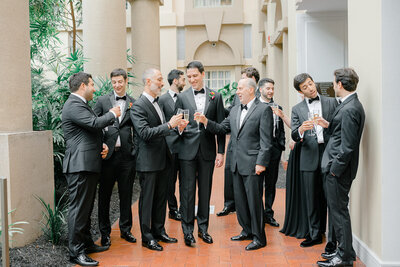 Prep, What to Shoot - Buttoning cuffs, tying tie, putting on jacket, best man (or dad) helping groom put on jacket, tying shoes, groom and groomsmen holding fancy glasses or bottles, mother of the groom placing the boutonniere on the groom’s jacket…
